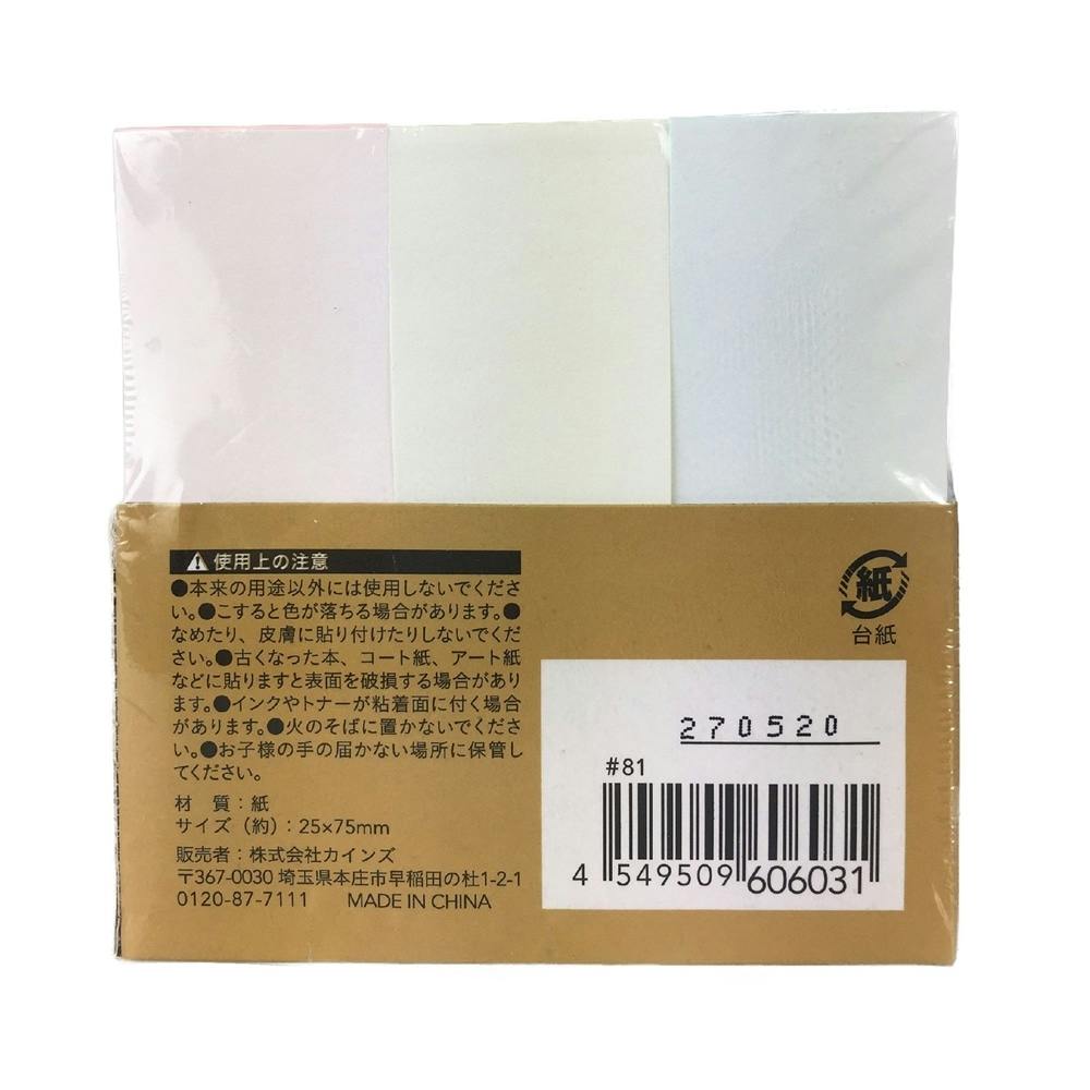 ●本来の用途以外には使用しないでください。●こすると色が落ちる場合があります。●なめたり、皮膚に貼り付けたりしないでください。●古くなった本、コート紙、アート紙などに貼りますと表面を破損する場合があります。