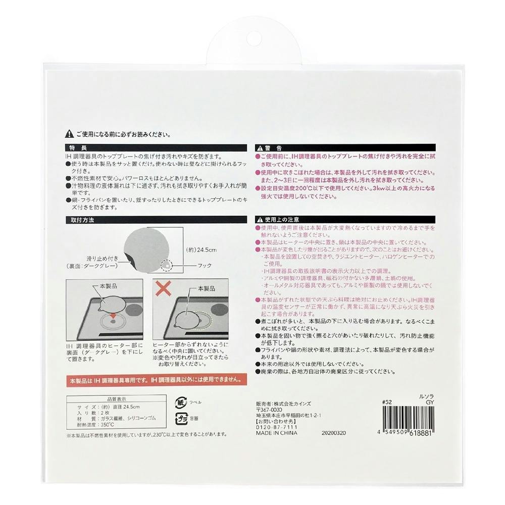 IHクッキングヒーター用保護マット 24.5cm ルソラ 2枚入(販売終了)