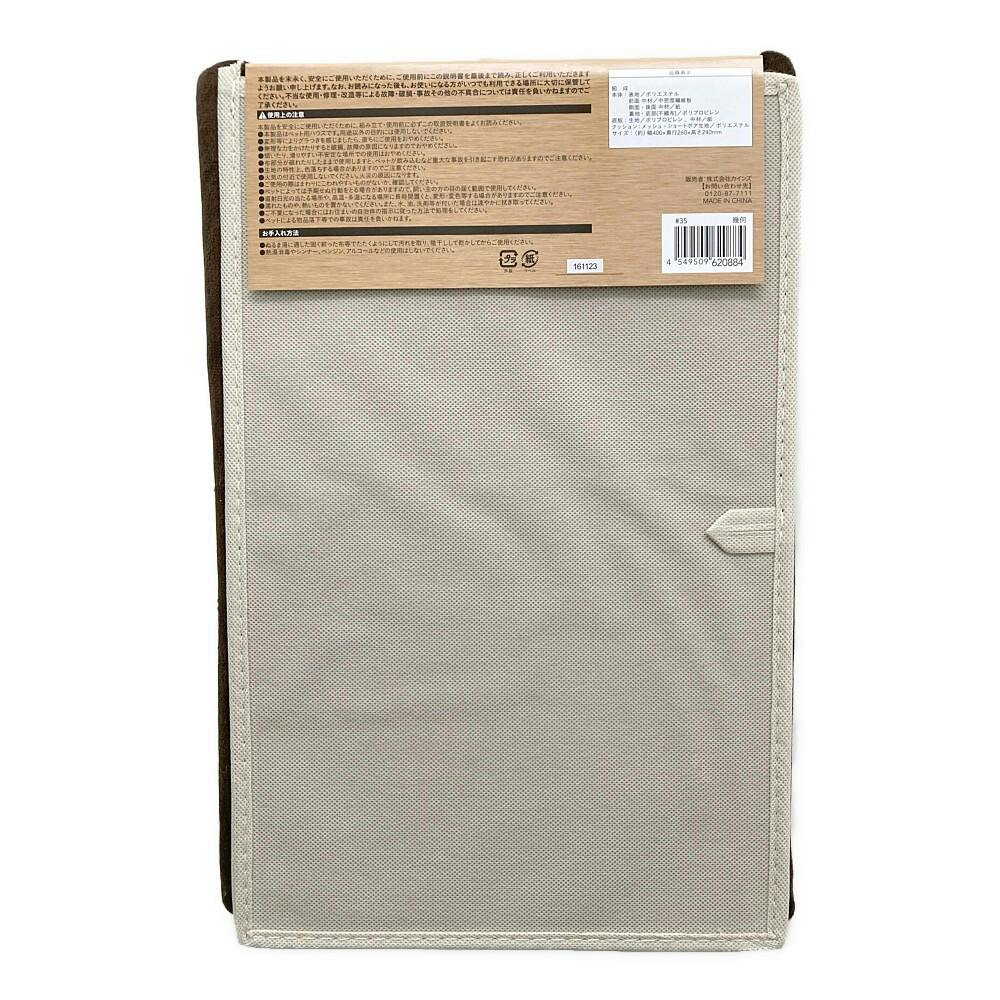 ●本体:表地/ポリエステル、前面中材/中密度繊維板、側面・後面中材/紙、裏地・底部(不織布)/ポリプロピレン●底板:生地/ポリプロピレン、中材/紙●クッション:メッシュ・ショートボア生地/ポリエステル