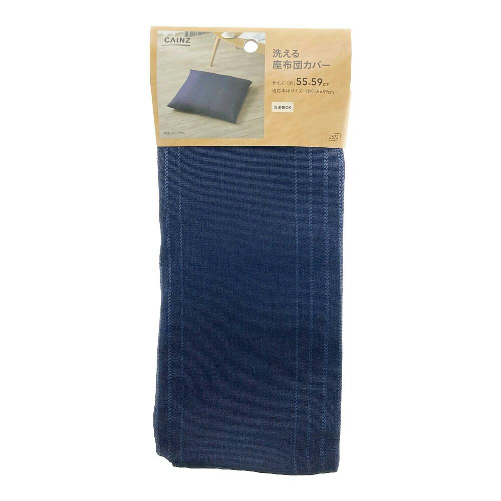 洗える座布団カバー 葵ライン ネイビー 55×59cm※カバーのみ