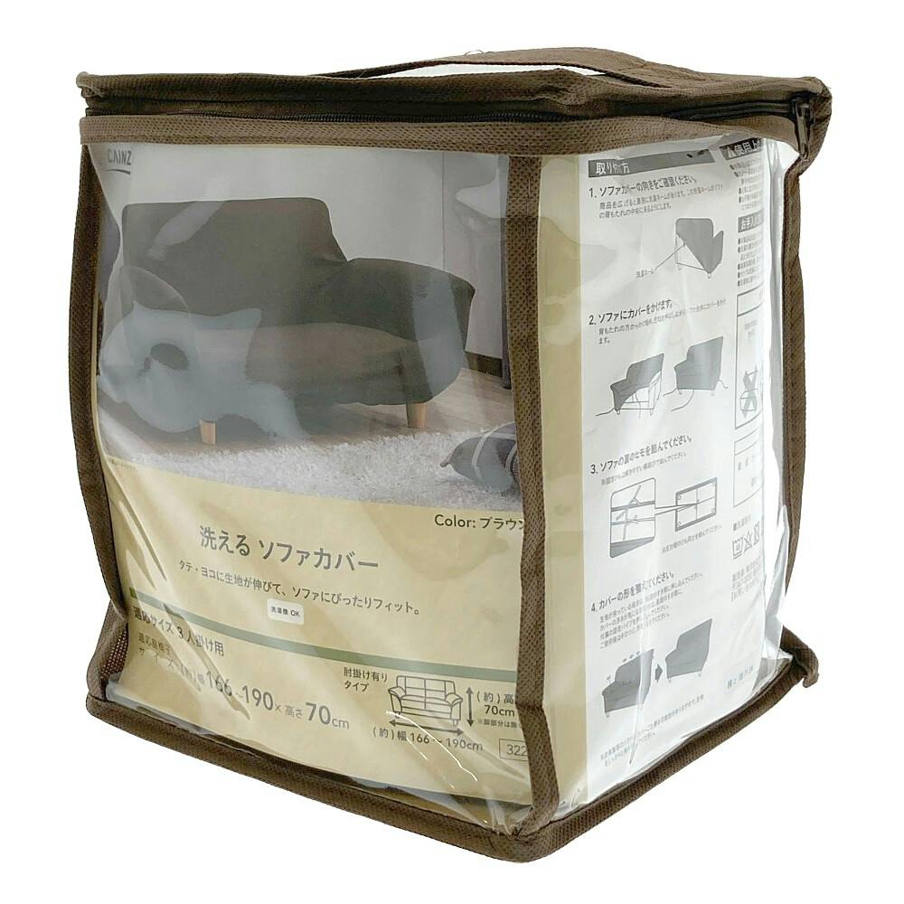 洗えるソファカバー レクト ブラウン 3人用 幅166~190cm 高さ70cm 洗濯機OK 肘掛け有りタイプ ソファーカバー (カバーのみ)