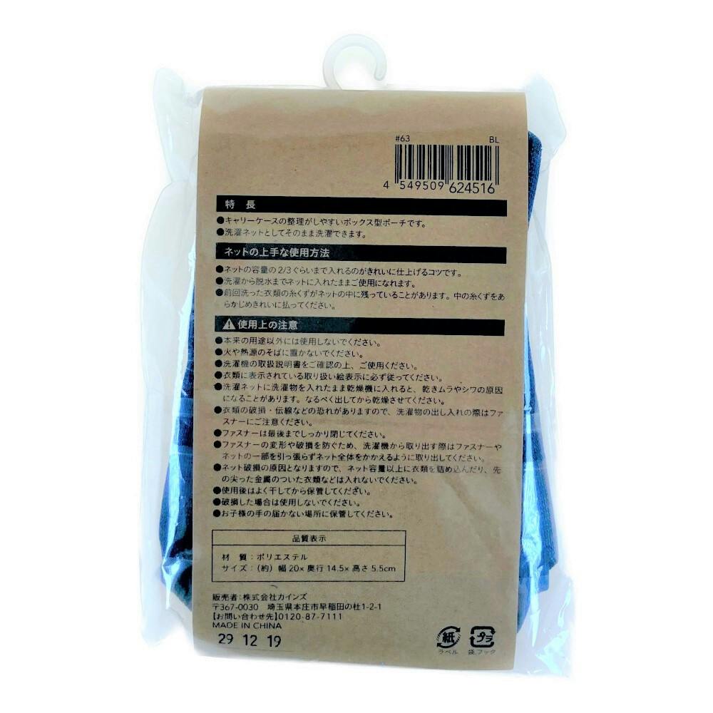 ●キャリーケースの整理がしやすいボックス型ポーチです。●洗濯ネットとしてそのまま洗濯できます。