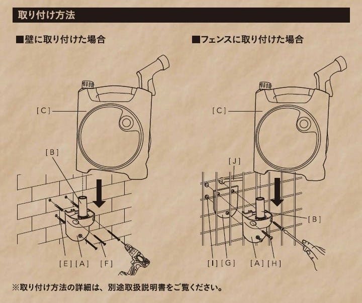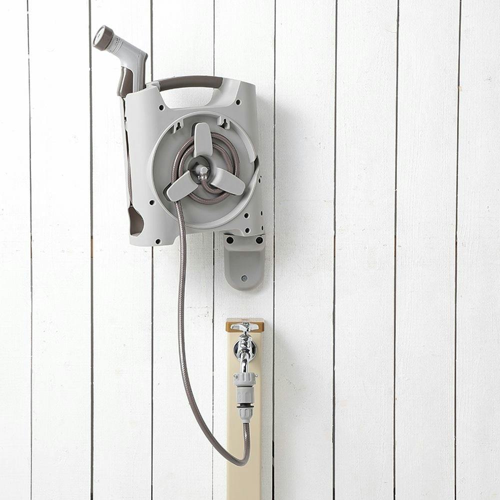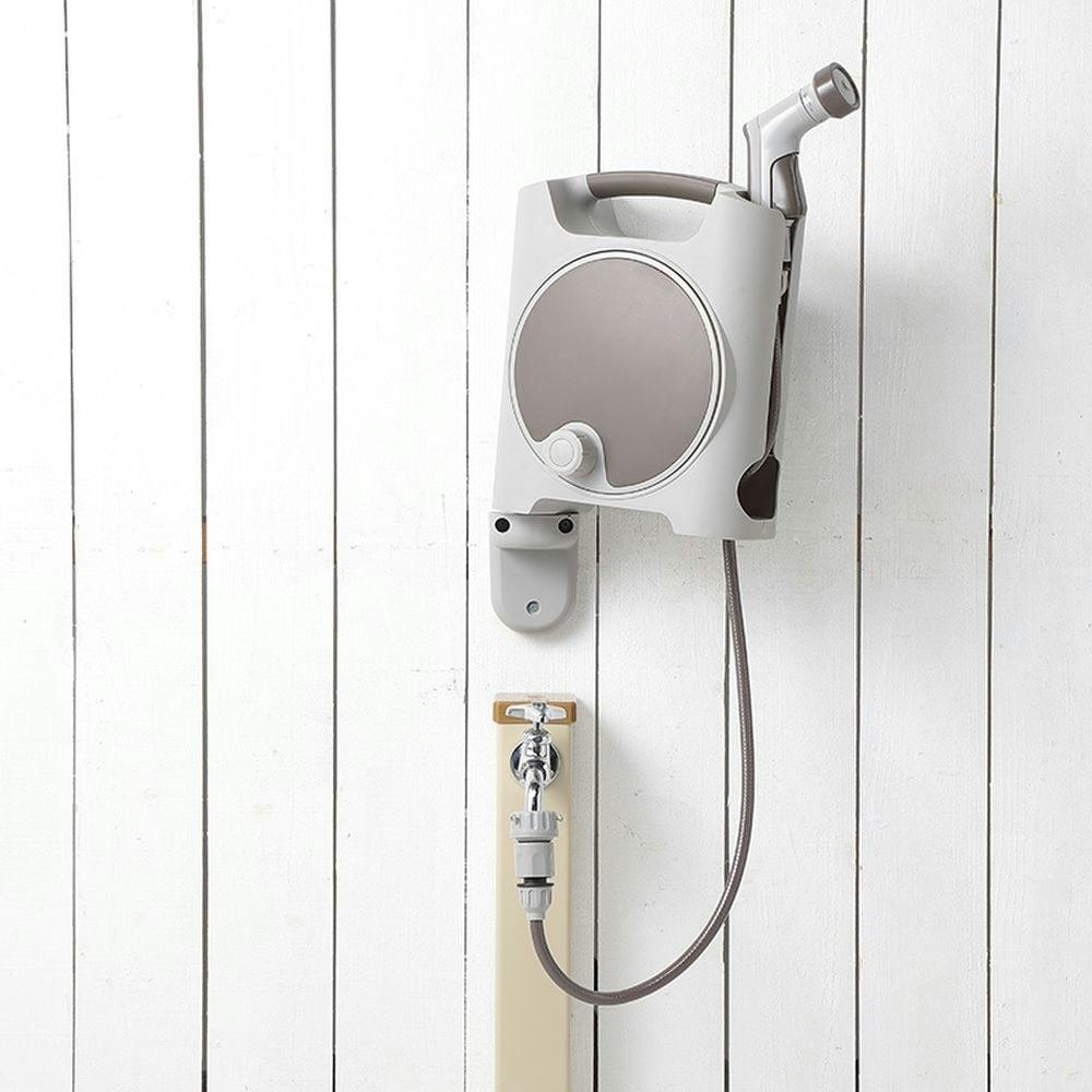 ●壁やフェンスに取り付けて使用すれば本体が倒れる心配がなく、左右に振れるので使い勝手が良い。●庭に合う落ち着いた色合いとデザイン。●コンパクトで持ち運びがしやすい。●ホースが本体にスッキリ収まって収納に便利。