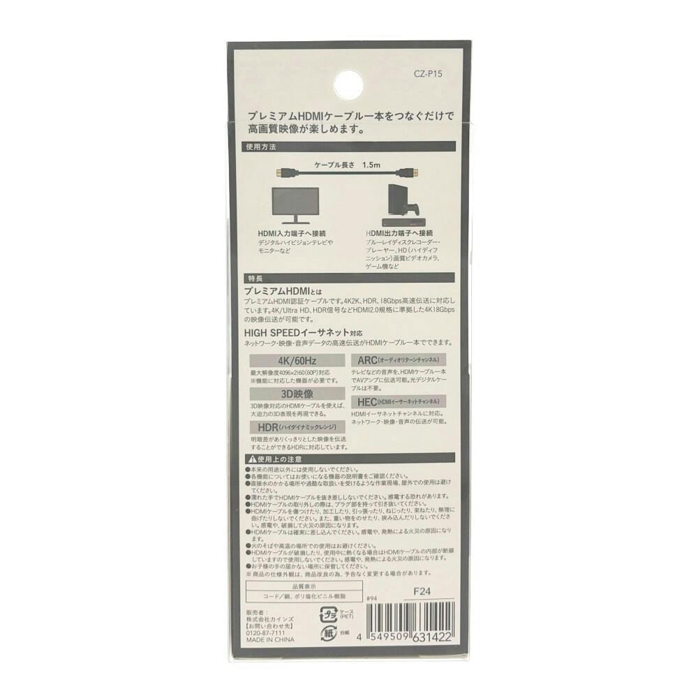 カインズ プレミアムHDMIケーブル 1.5m CZ-P15