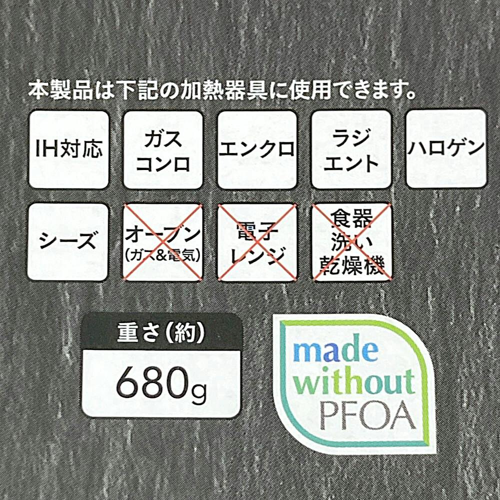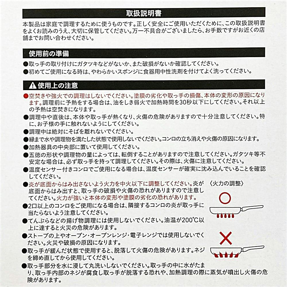 ●内側/ふっ素樹脂塗膜加工 ●外側/硬質アルマイト処理(底面を除く)