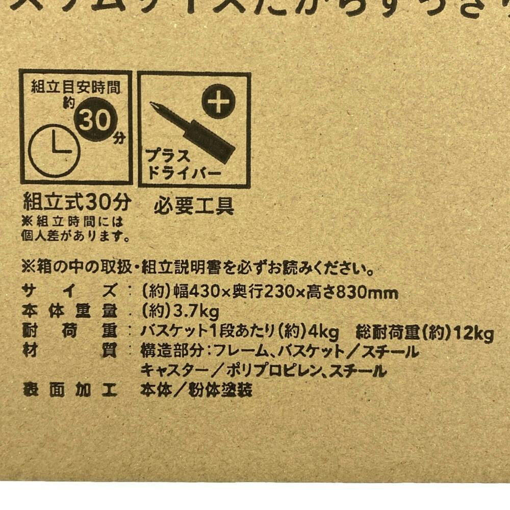 ●フレーム、バスケット/スチール ●キャスター/ポリプロピレン、スチール