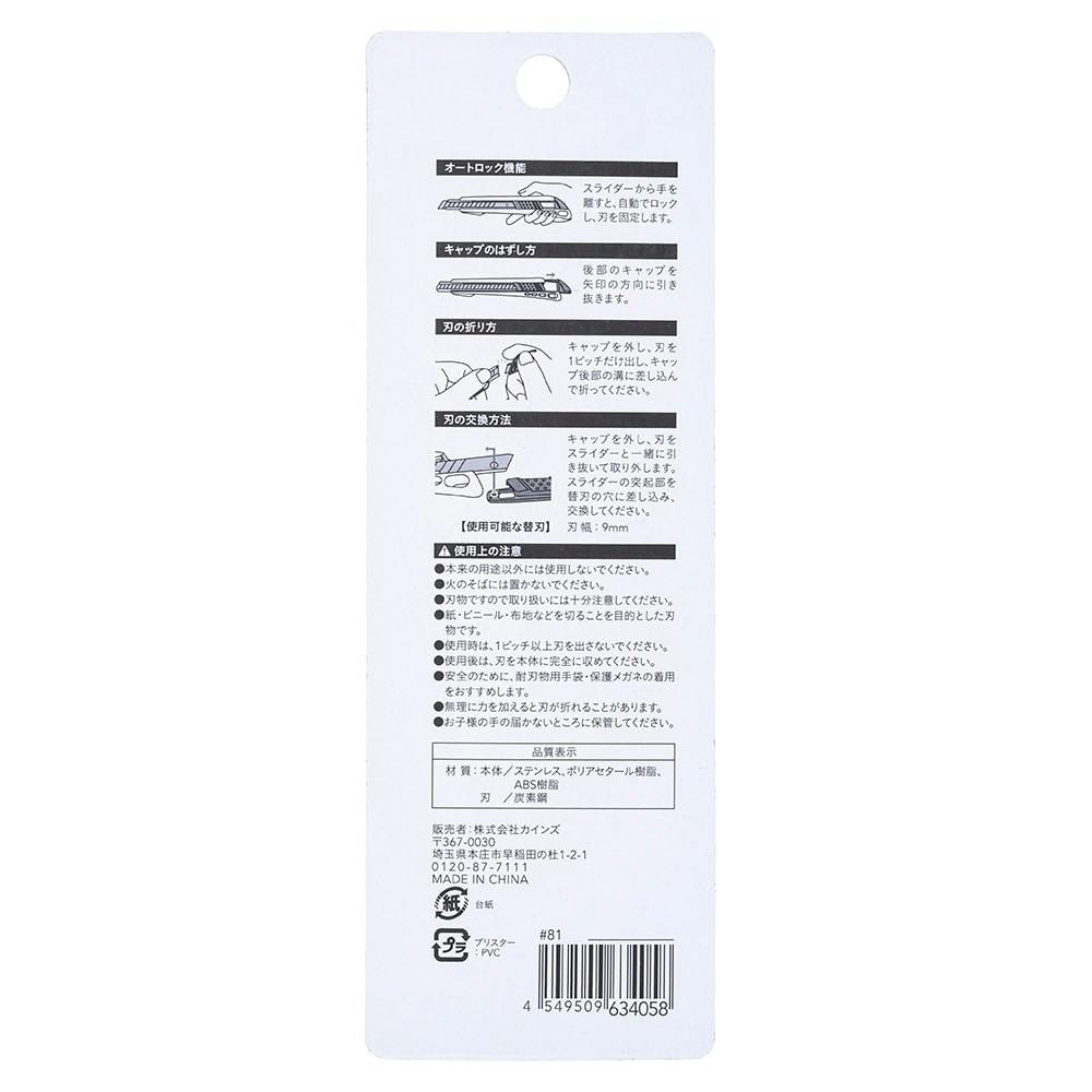 ●本来の用途以外には使用しないでください。●火のそばには置かないでください。●刃物ですので取り扱いには十分注意してください。●紙・ビニール・布地などを切ることを目的とした刃物です。●使用時は、1ピッチ以上刃を出さないでください。
