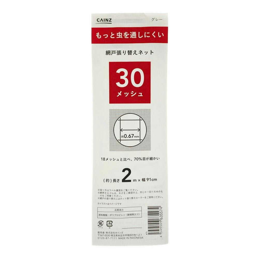 カインズ オリジナル 網戸張り替えネット 30メッシュ グレー 幅91cm 長さ2m 網戸張替え網 小さな虫も入りにくい