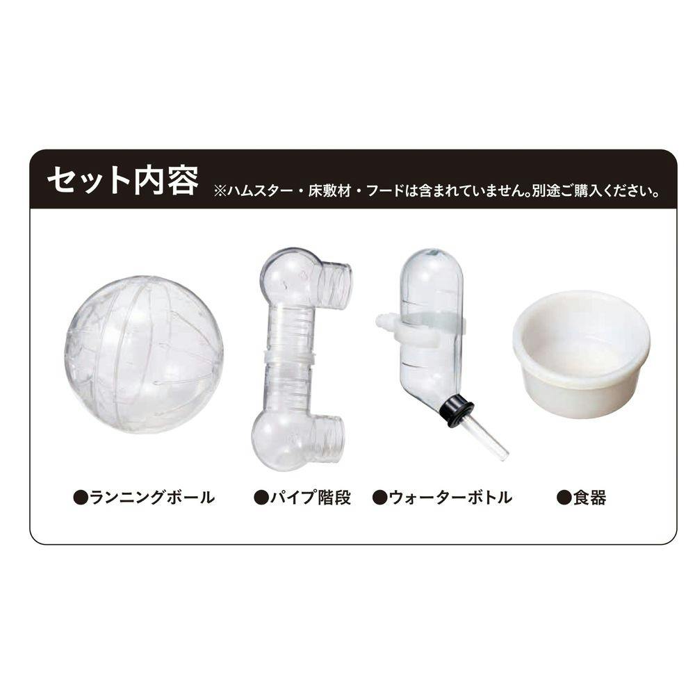 ランニングボール、パイプ階段、ウォーターボトル、食器 ※ハムスター・床敷材・フードは含まれていません。別途ご購入ください。