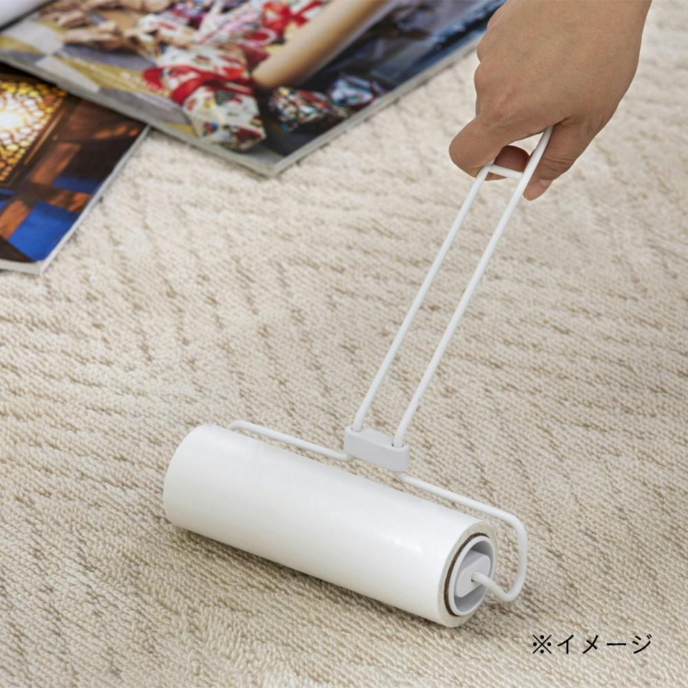 ①はくり紙をめくってください。②前方へ2~3回転がしてからご使用ください。フチ部がめくれた状態で使用するとカーペットに貼り付くことがありますのでご注意ください。③粘着力が弱まったら、テープをはがしてください。