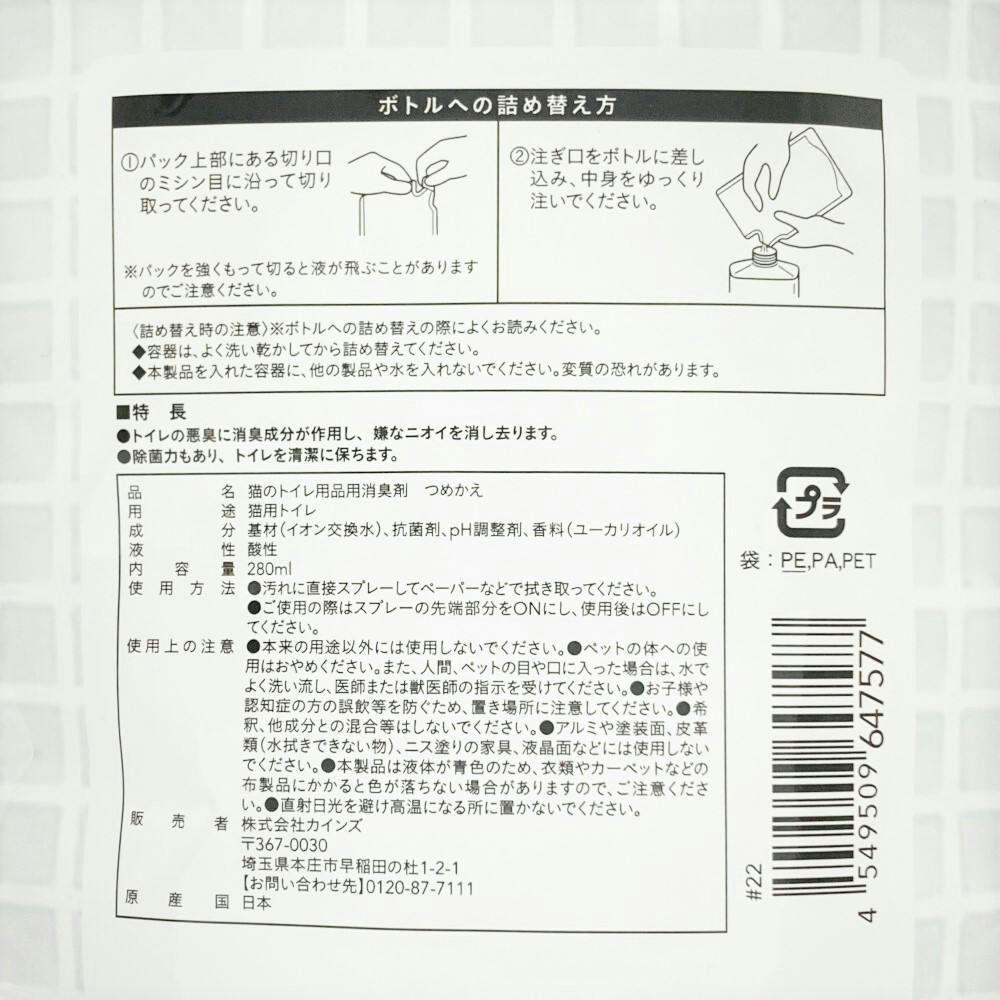 • Pet’sOne 猫用トイレの消臭スプレー 詰め替え 280ml