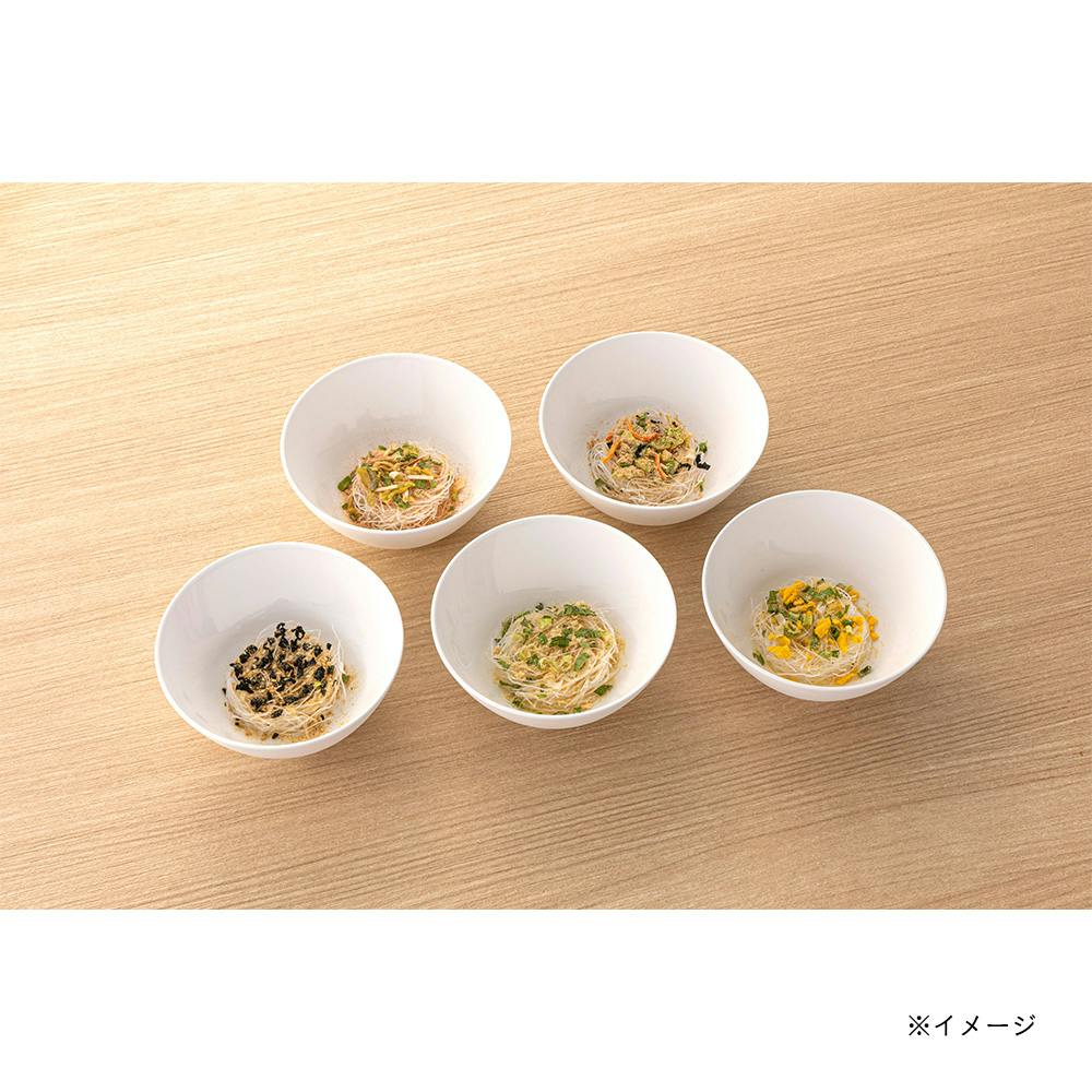 チゲ春雨(14.2g):44kcal、中華しょうゆ(13.4g):43kcal、ごまわかめ春雨(12.3g):42kcal、鶏だし白湯春雨(11.8g):39kcal、かきたま春雨(11.1g):36kcal