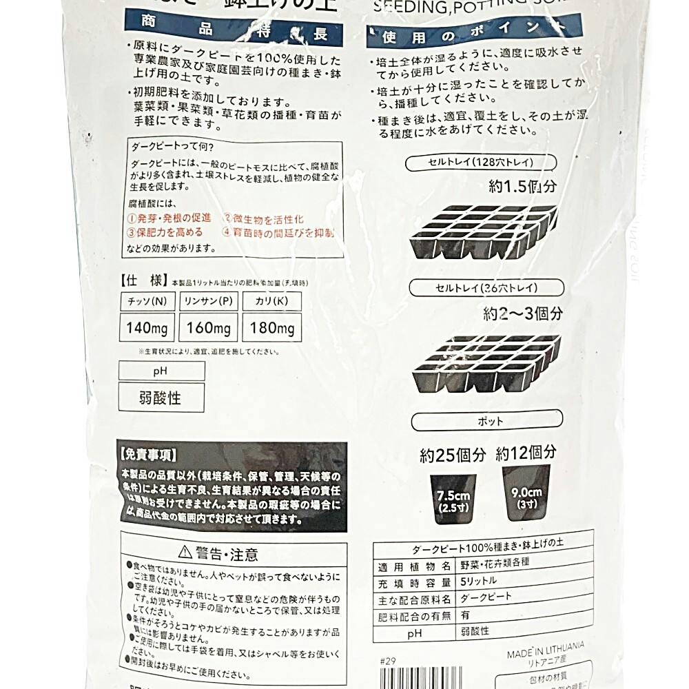 ●原料にダークピートを100%使用した専業農家及び家庭菜園向けての種まき・鉢上げ用の土です。●初期肥料を添加しております。葉菜類・果菜類・草花類の播種・育苗が手軽にできます。