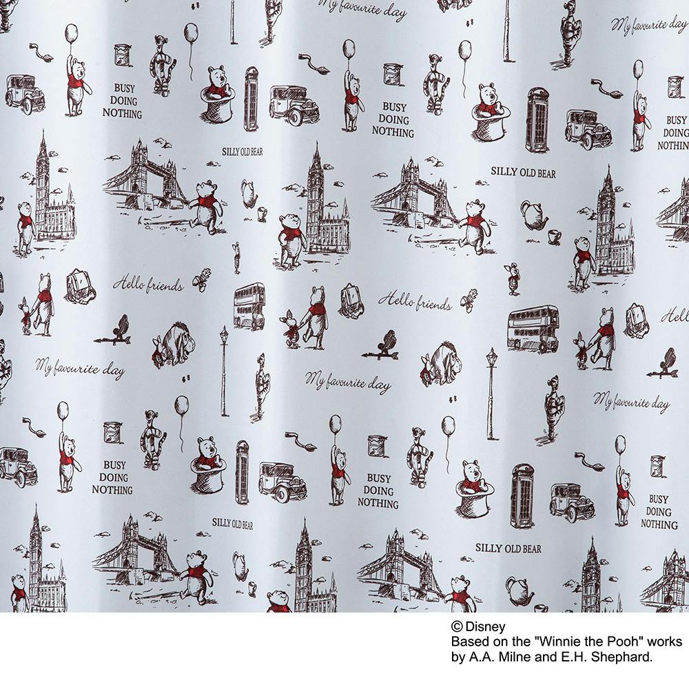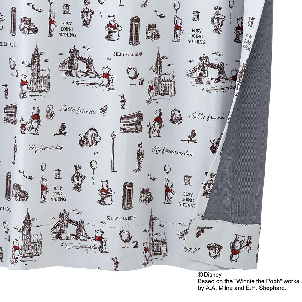 ディズニー カーテン くまのプーさん ロンドン 100×210cm 2枚組 洗濯OK 形状記憶 遮光99.99% タッセル付き【別送品】