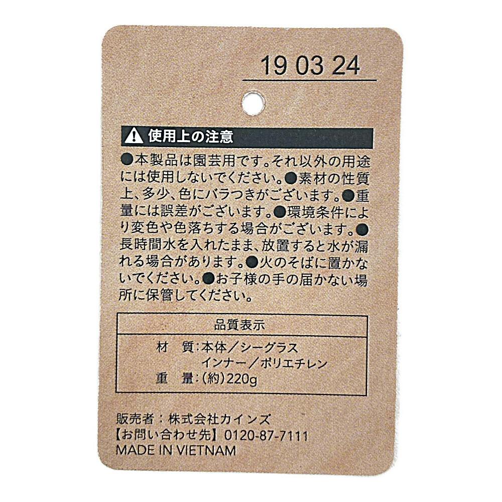 ●本製品は園芸用です。それ以外の用途には使用しないでください。●素材の性質上、多少、色にバラつきがございます。●重量には誤差がございます。●環境条件により変色や色落ちする場合がございます。●長時間水を入れたまま、放置すると水が漏れる場合があります。