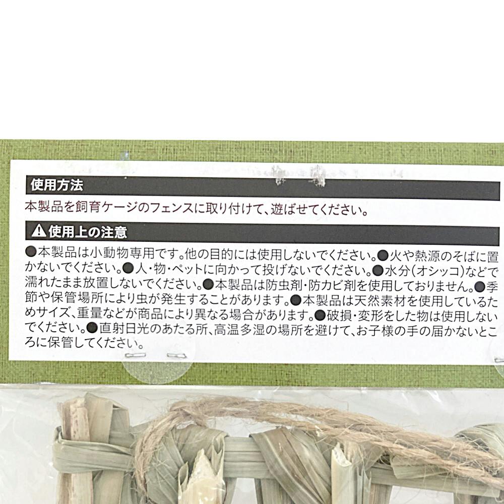 ●本製品は小動物専用です。他の目的には使用しないでください。●火や熱源のそばに置かないでください。●人・物・ペットに向かって投げないでください。●水分(オシッコ)などで濡れたまま放置しないでください。