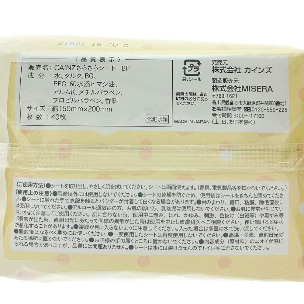 カインズ さらさらボディシート ノンメントール ベビーパウダーの香り 40枚