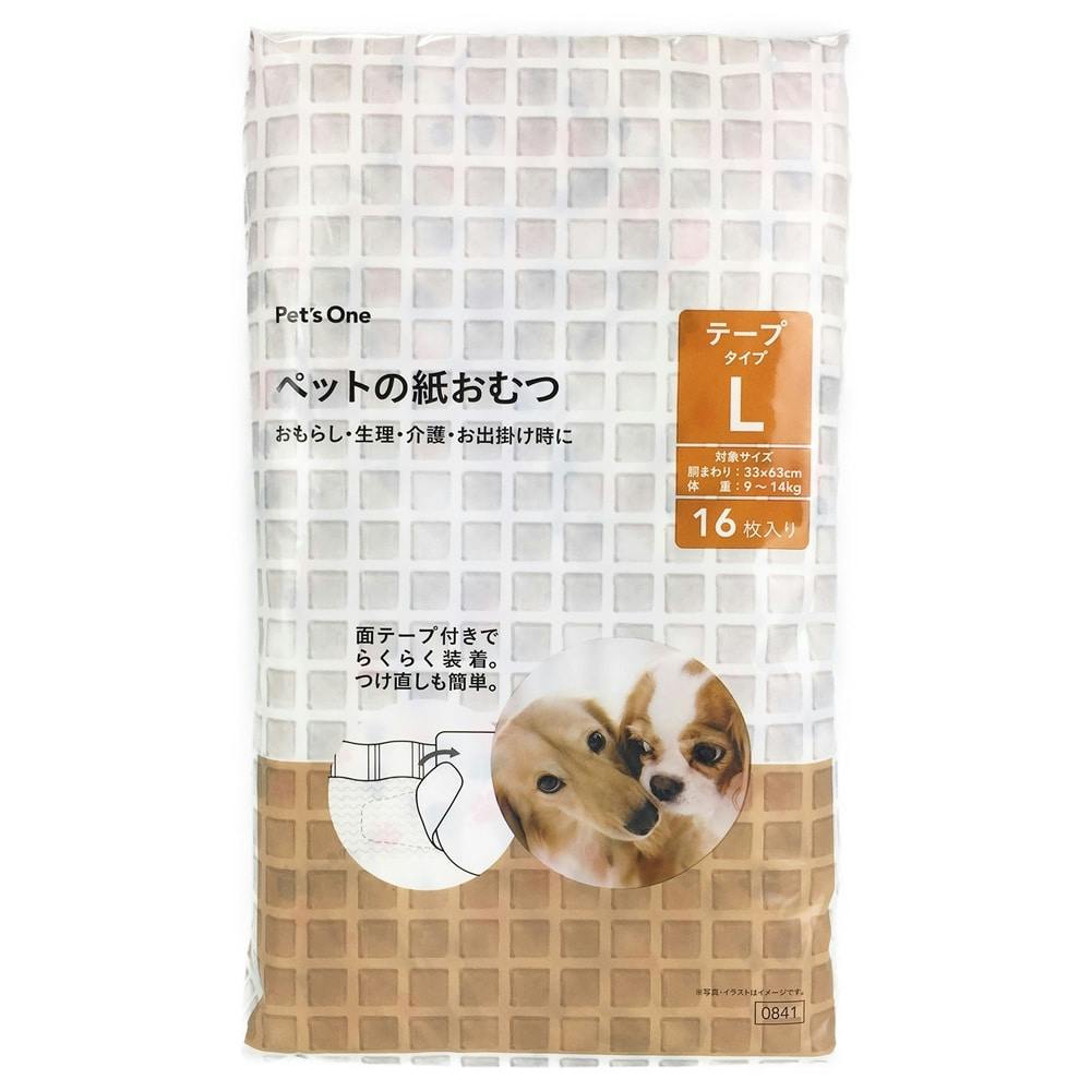 カインズ ペットの紙おむつ Lサイズ 16枚入り 犬用 適応体重9~14kg 面テープ付き らくらく装着 つけ直し簡単(販売終了)