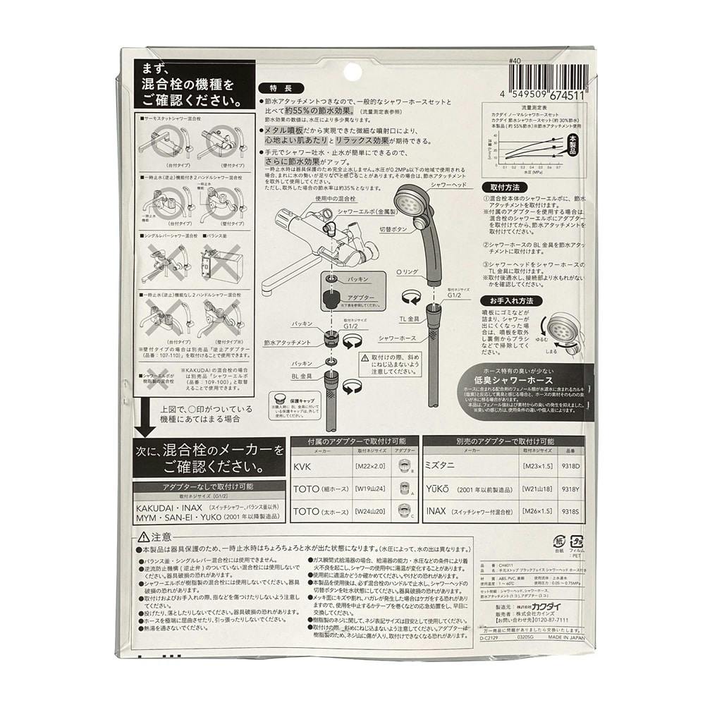 ●節水アタッチメントつきなので、一般的なシャワーホースセットと比べて約55%の節水効果。●メタル噴板だから実現できた微細な噴射口により、心地よい肌当たりとリラックス効果が期待できる。●手元でシャワー吐水・止水が簡単にできるので、さらに節水効果がアップ。
