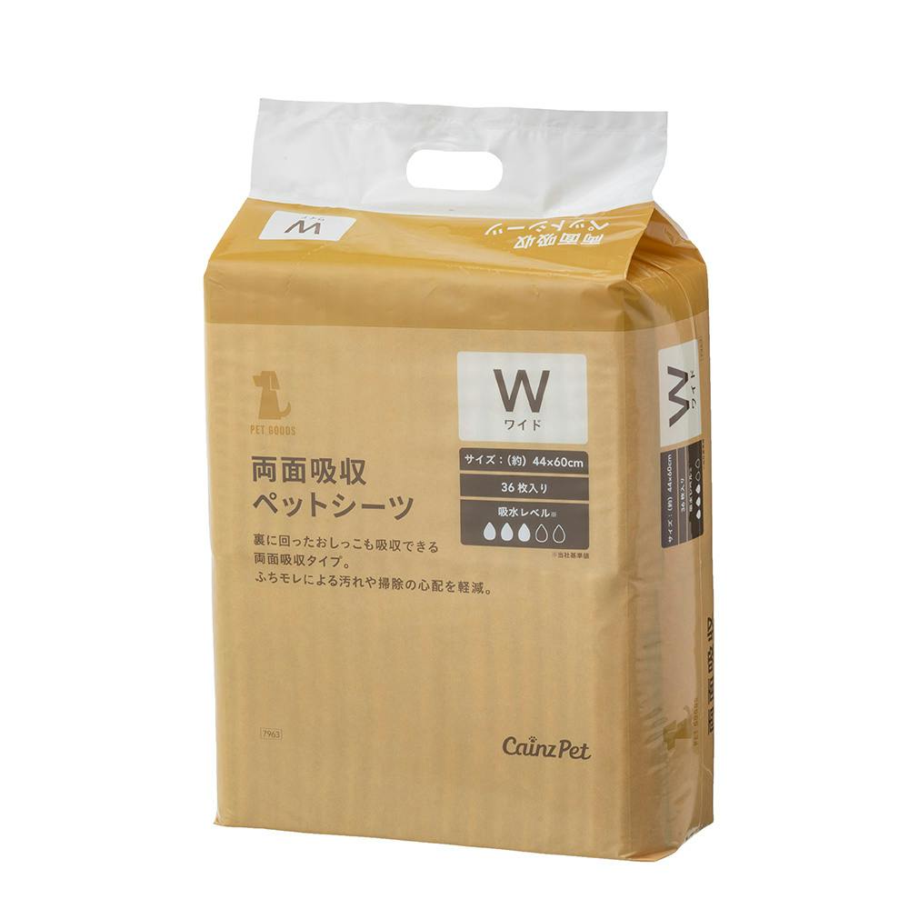 カインズ 両面吸収ペットシーツ ワイド 36枚 犬用 小型犬約3~4回分 ふちから漏れたおしっこを裏面で吸収 ペットシート
