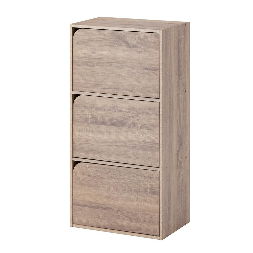 ドア付き 収納ボックス 3段 ナチュラルエルム S44