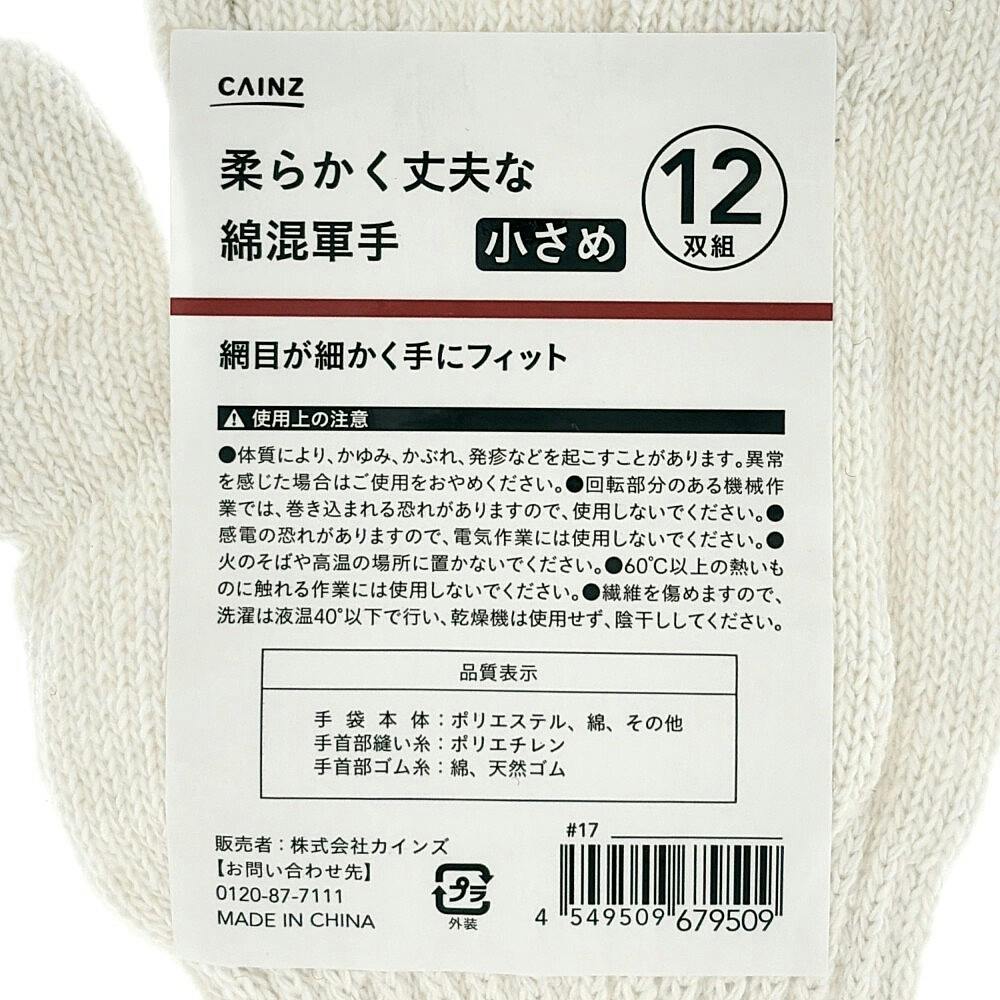 カインズ 柔らかく丈夫な綿混軍手12双組(小さめ)