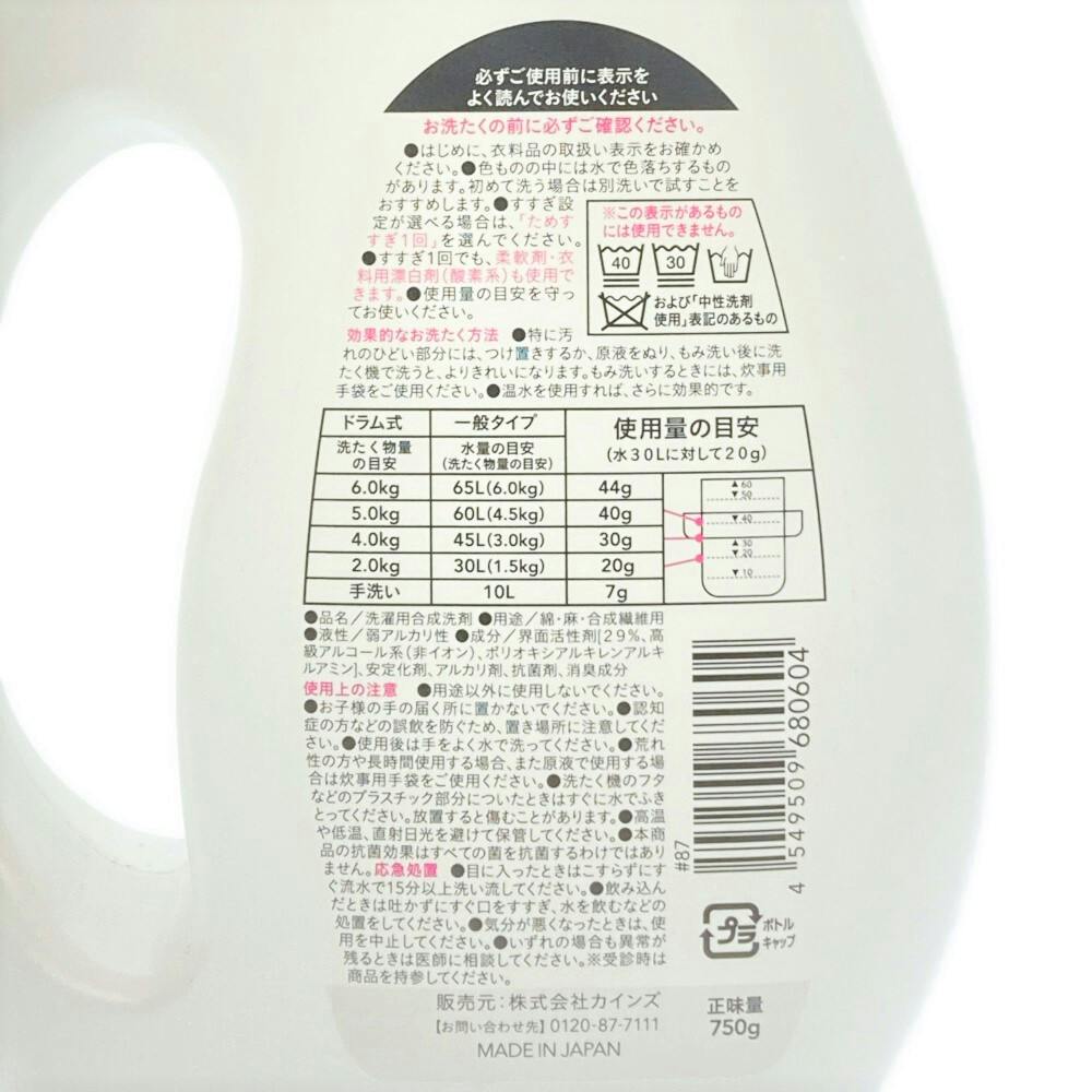 ●ガンコな汚れを・洗浄 ●分解抗菌剤配合で汗や生乾きのニオイも防ぐ ●消臭成分配合 ●すすぎ1回でOK ●蛍光剤を使用していません
