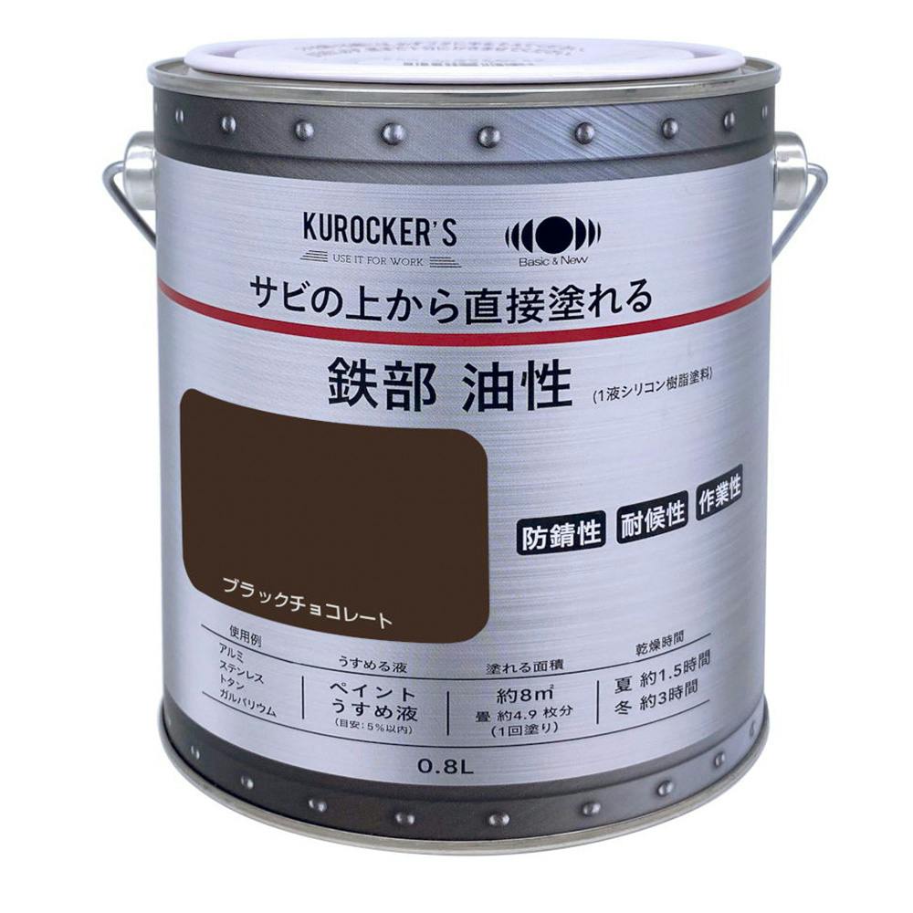 KUROCKER’S サビの上から直接塗れる 鉄部 油性 ブラックチョコレート 0.8L