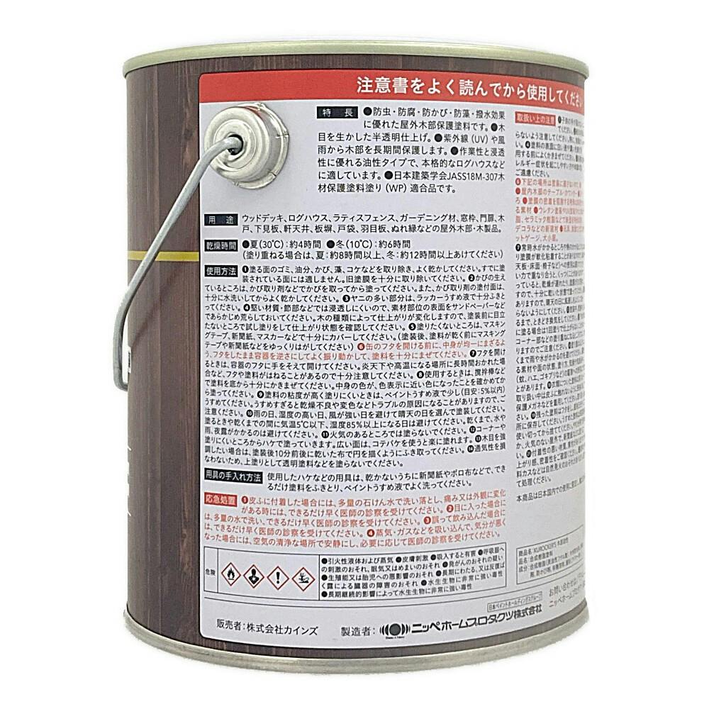 合成樹脂(長油性フタル酸)、顔料、木材防虫剤、防腐剤、防かび剤、有機溶剤