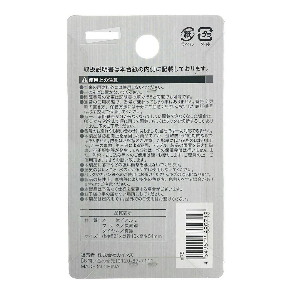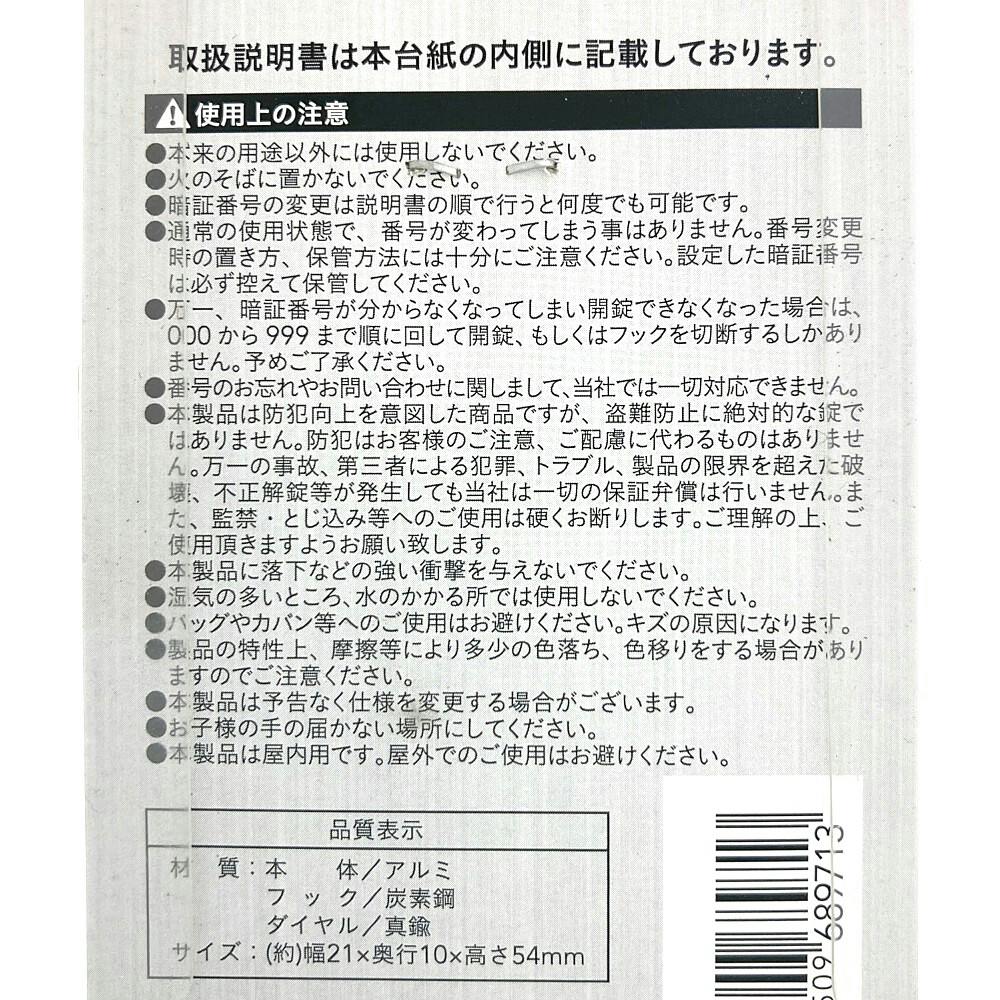 ●本来の用途以外には使用しないでください。●火のそばに置かないでください。●暗証番号の変更は説明書の順で行うと何度でも可能です。●通常の使用状態で、番号が変わってしまう事はありません。番号変更時の置き方、保管方法には十分にご注意ください。