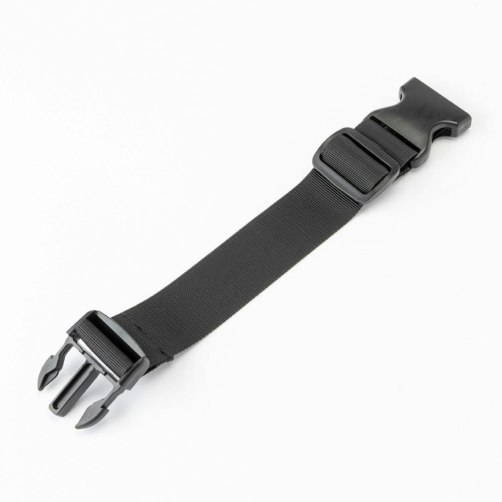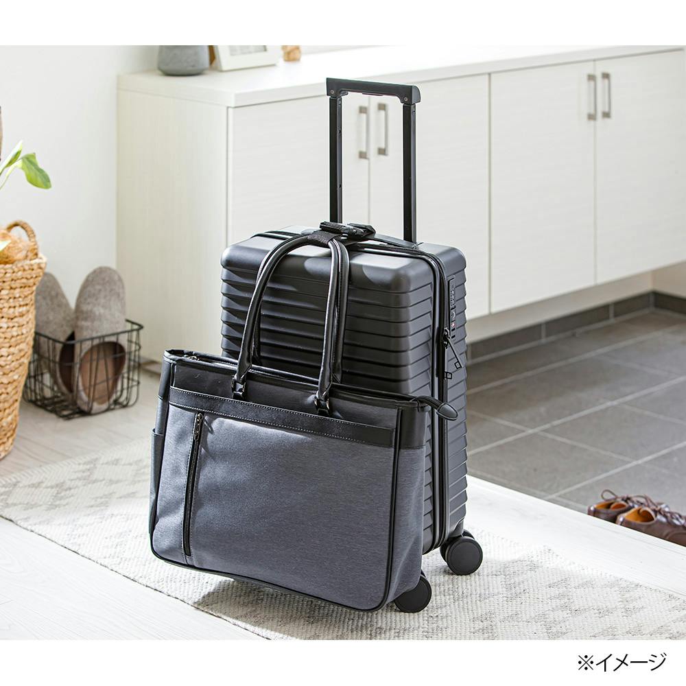 スーツケースの持ち手と手荷物の持ち手にベルトを通し、留めます。