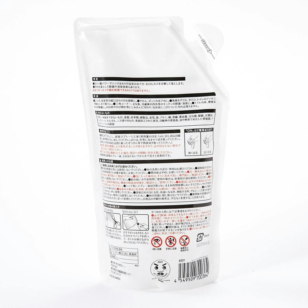 ●詰め替え用●まぜるな危険酸性タイプ※塩素系の製品と一緒に使う(まぜる)と有害な塩素ガスが出て危険※飲料水ではありません。●クエン酸パワーでシンクまわりや浴室の水アカ・石けんカスを分解して落とします。●汚れを落として除菌や消臭効果もあります。