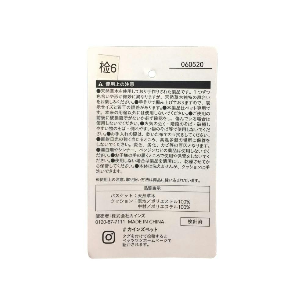 ●猫用●天然草木を使用しており、手造りされた製品です。1つずつ色合いや形が微妙に異なりますが、天然草木独特の風合いをお楽しみ下さい●本体は洗えませんが、クッションは手洗いできます●Sサイズ