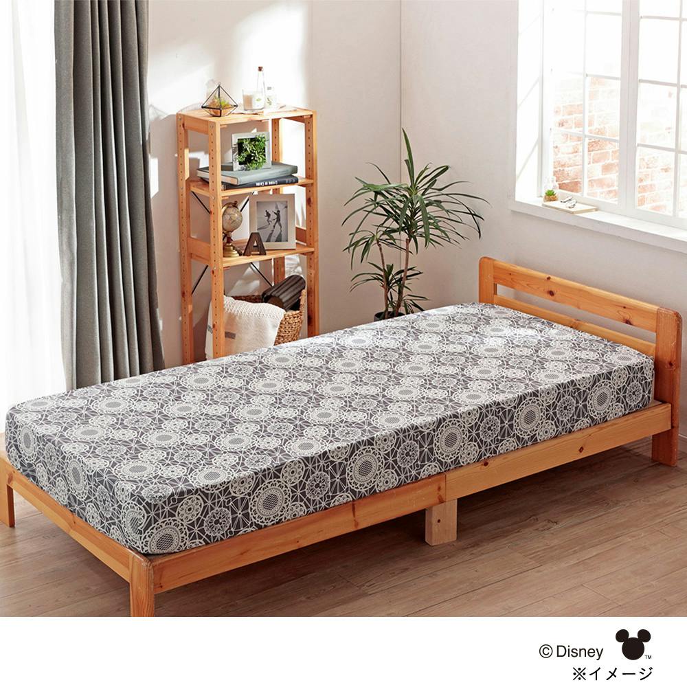 BOXシーツ ミッキーマウスレース/グレー セミダブル 120×200×30cm※カバーのみ