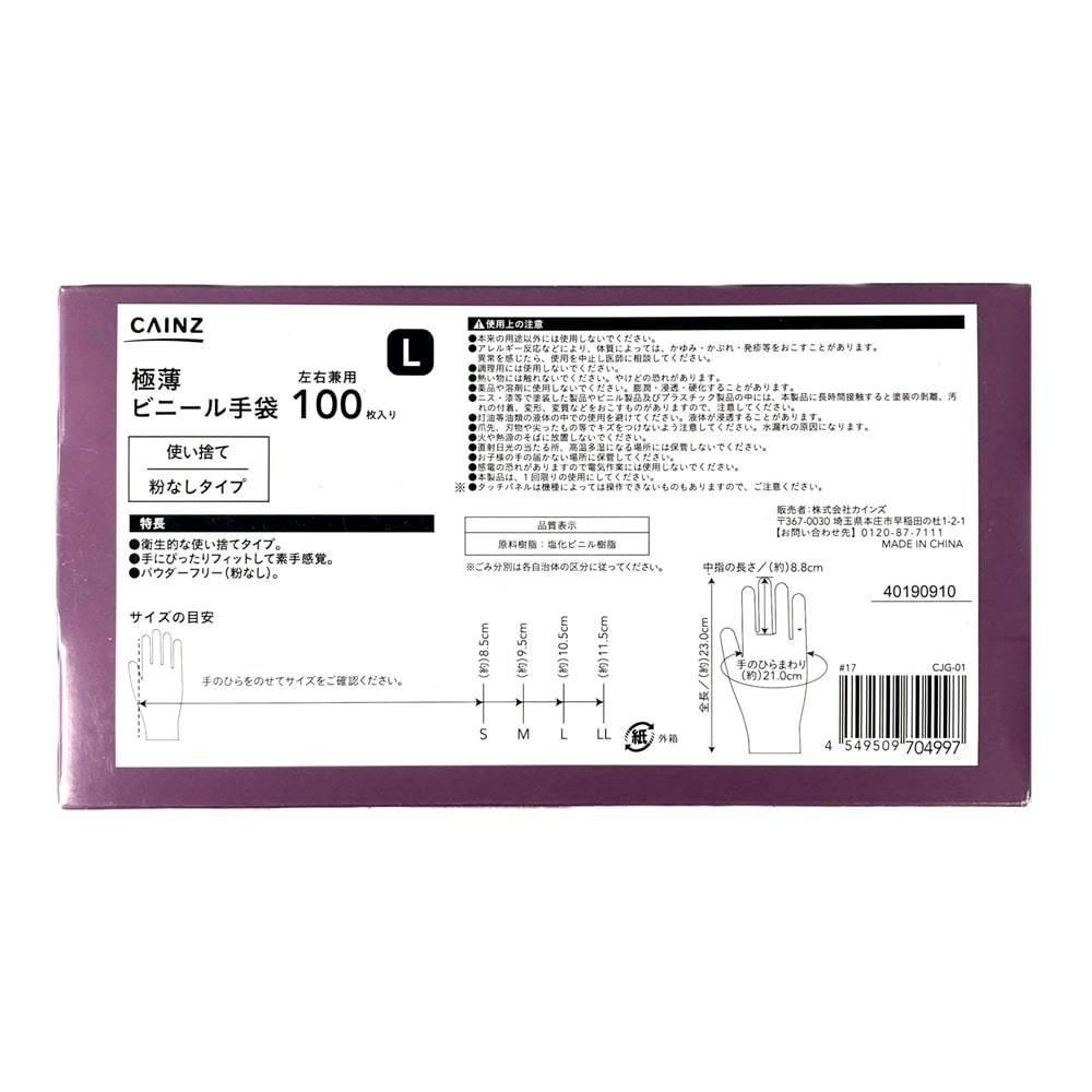カインズ 極薄 ビニール手袋 100枚入り L(販売終了)