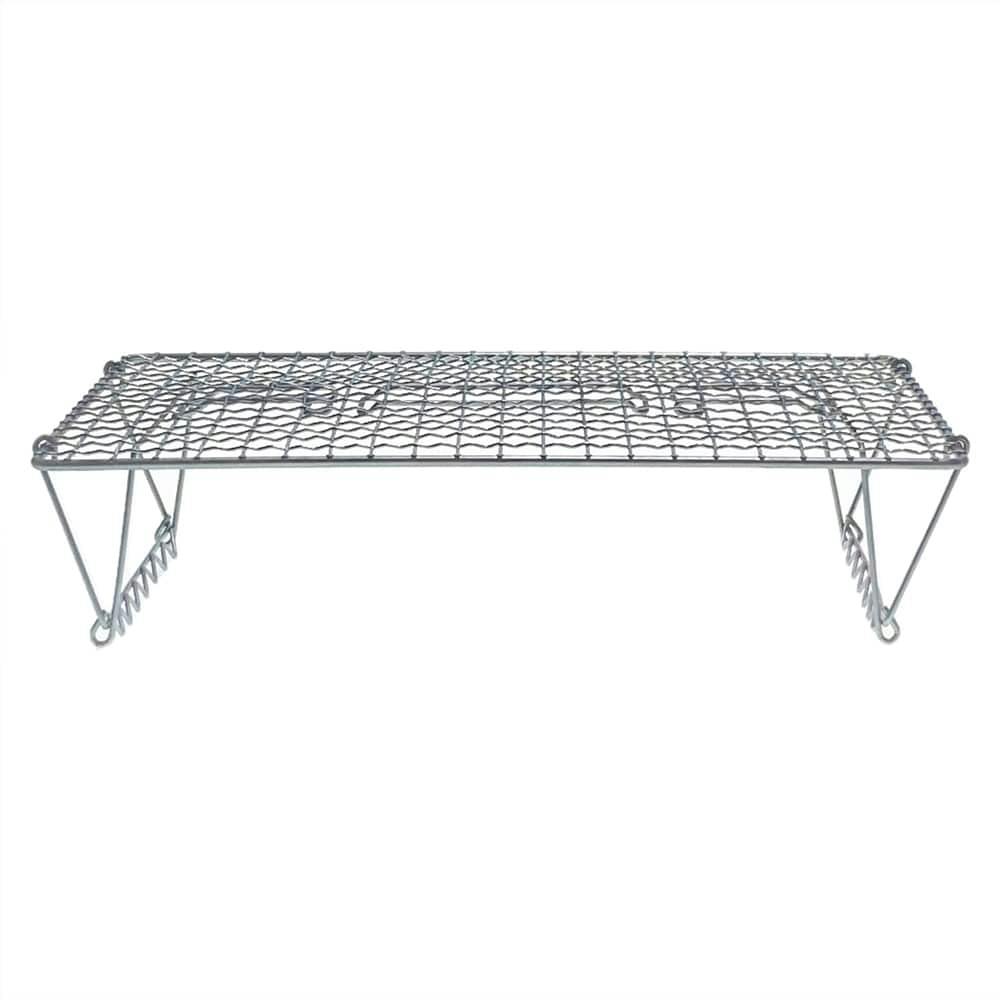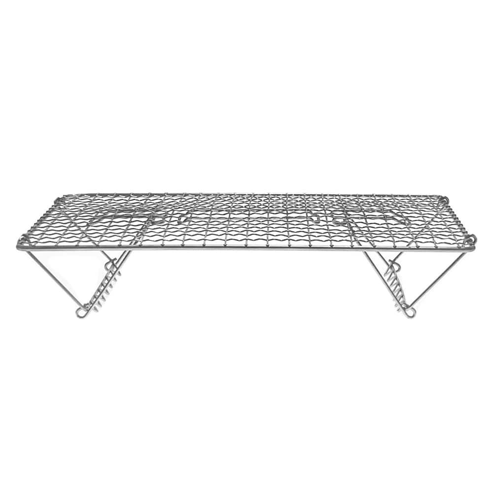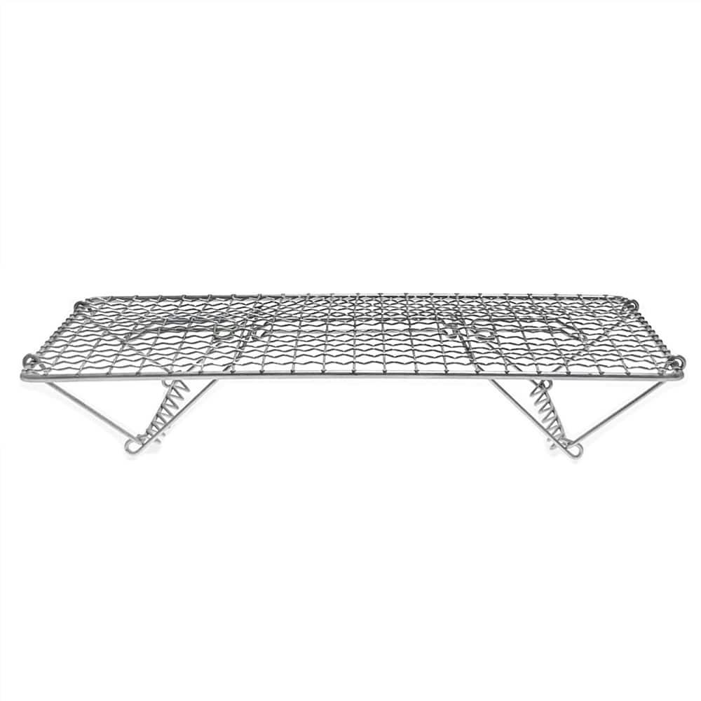 ●食材の焼き過ぎを防止しながら保温もできる調整脚付き網。●裏返すと串焼き台としても使える。●高さが3段階に調整可能