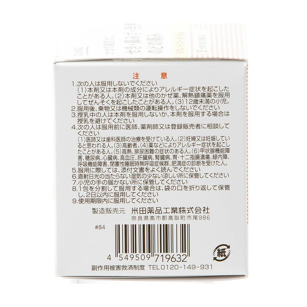 かぜの諸症状(鼻水、鼻づまり、くしゃみ、のどの痛み、せき、たん、悪寒、発熱、頭痛、関節の痛み、筋肉の痛み)の緩和