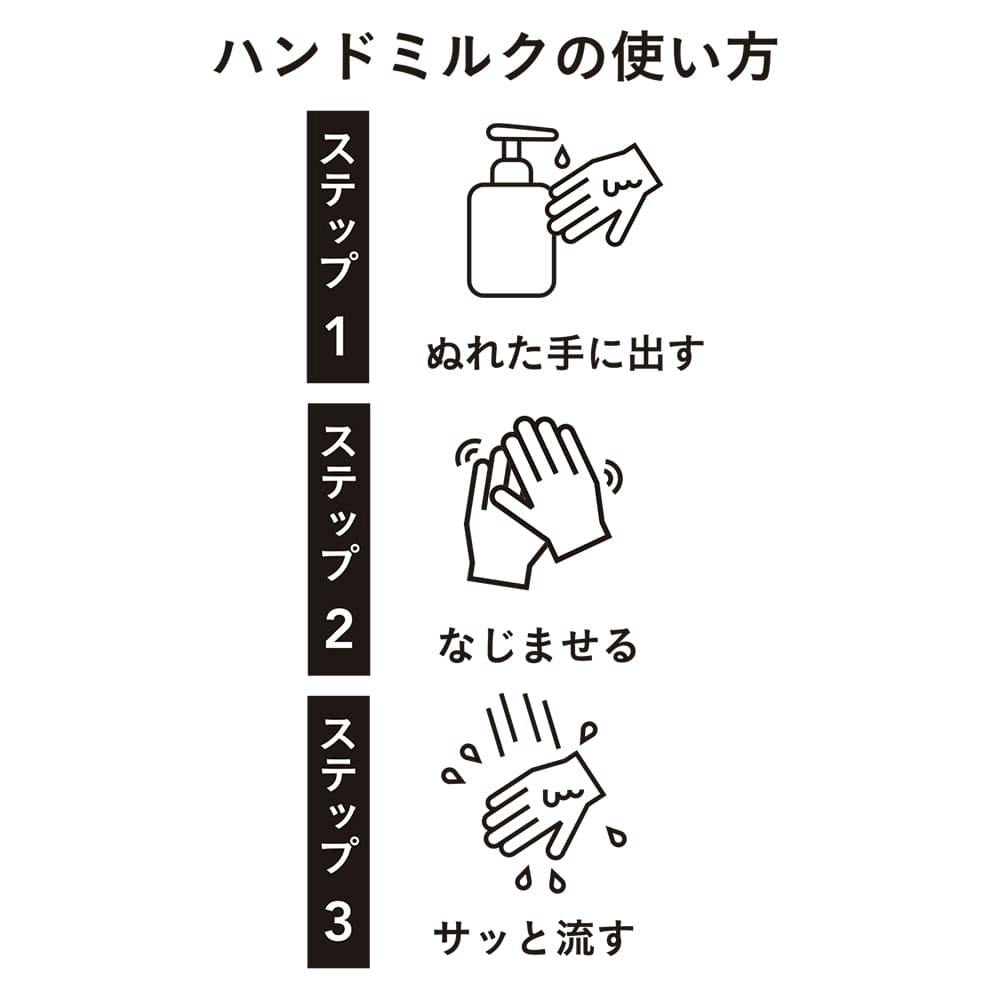 ●濡れた手でも使えるハンドミルク。●食器洗い・手洗い後、濡れた手に使えます。●ポンプを押して、手軽に時短ハンドケア。