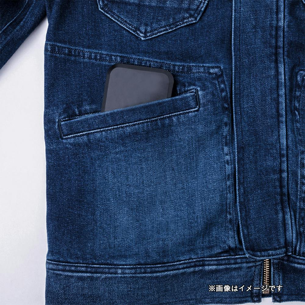 オールシーズン着用可能できる絶妙な生地厚と、動きやすいストレッチ性120%デニムウェア。少し濃い色味にした洗い加工と程よい色落ち感で着こなしやすいスタイリッシュな細身シルエット。カインズだけのオリジナルデニムセットアップ対応。内ポケットあり。