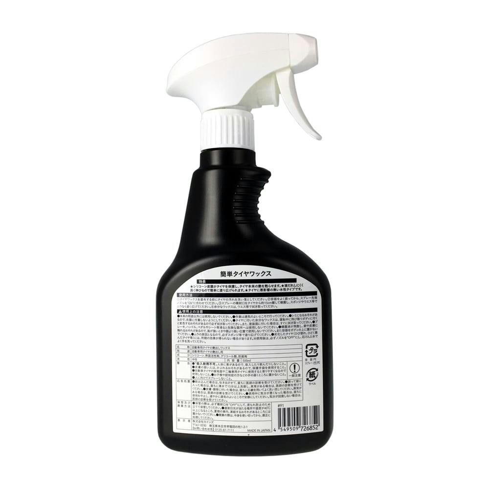 ①タイヤワックスを塗布する前にタイヤの汚れを洗い落としてください。②容器をよく振ってから、スプレー先端ノズルを”ON”に合わせてください。③スプレーの噴射口をタイヤから約15cm離して噴霧し、スポンジやウエス等でムラなく塗り広げてください。