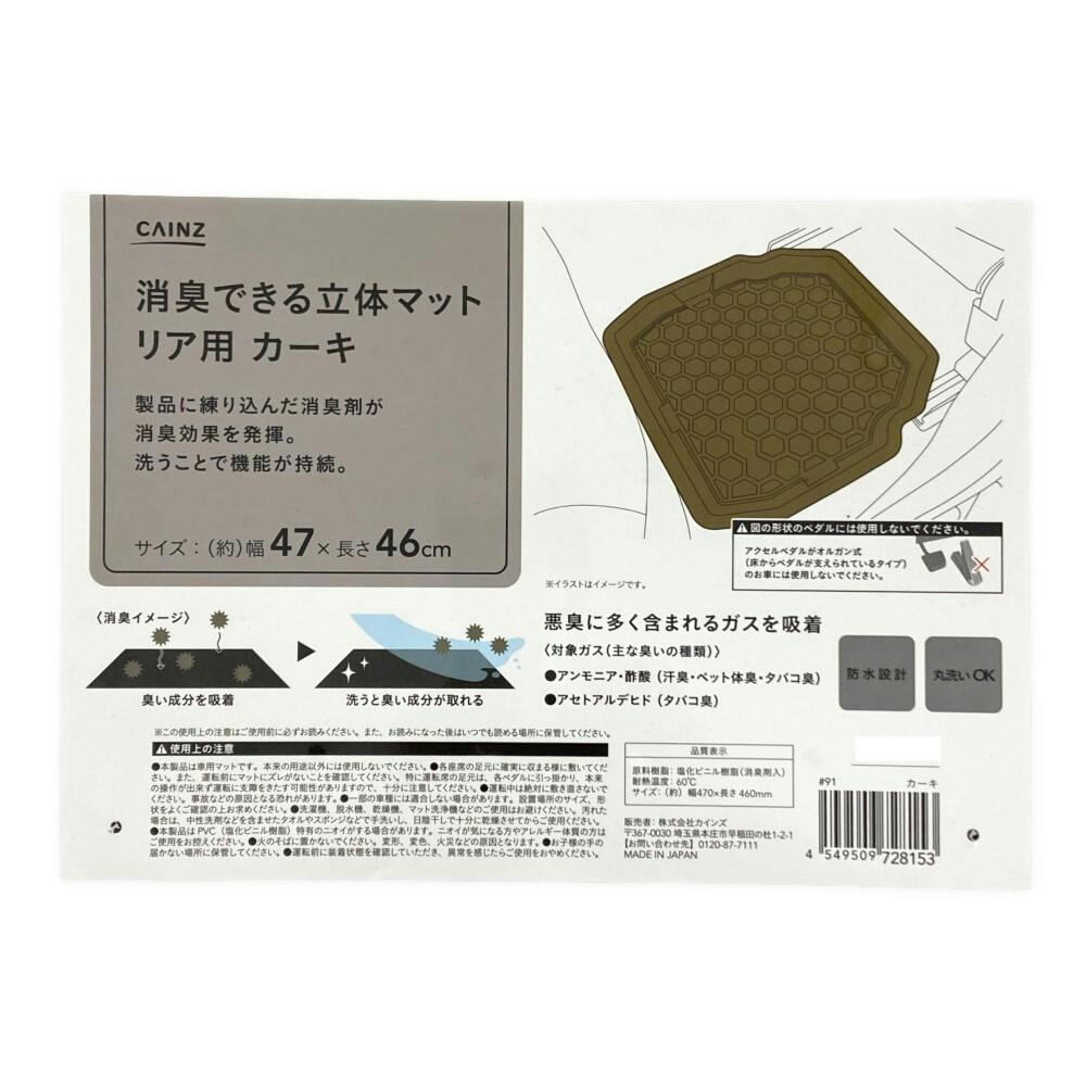 • カインズ 消臭できる立体マット リア用 カーキ 幅47cm×長さ46cm