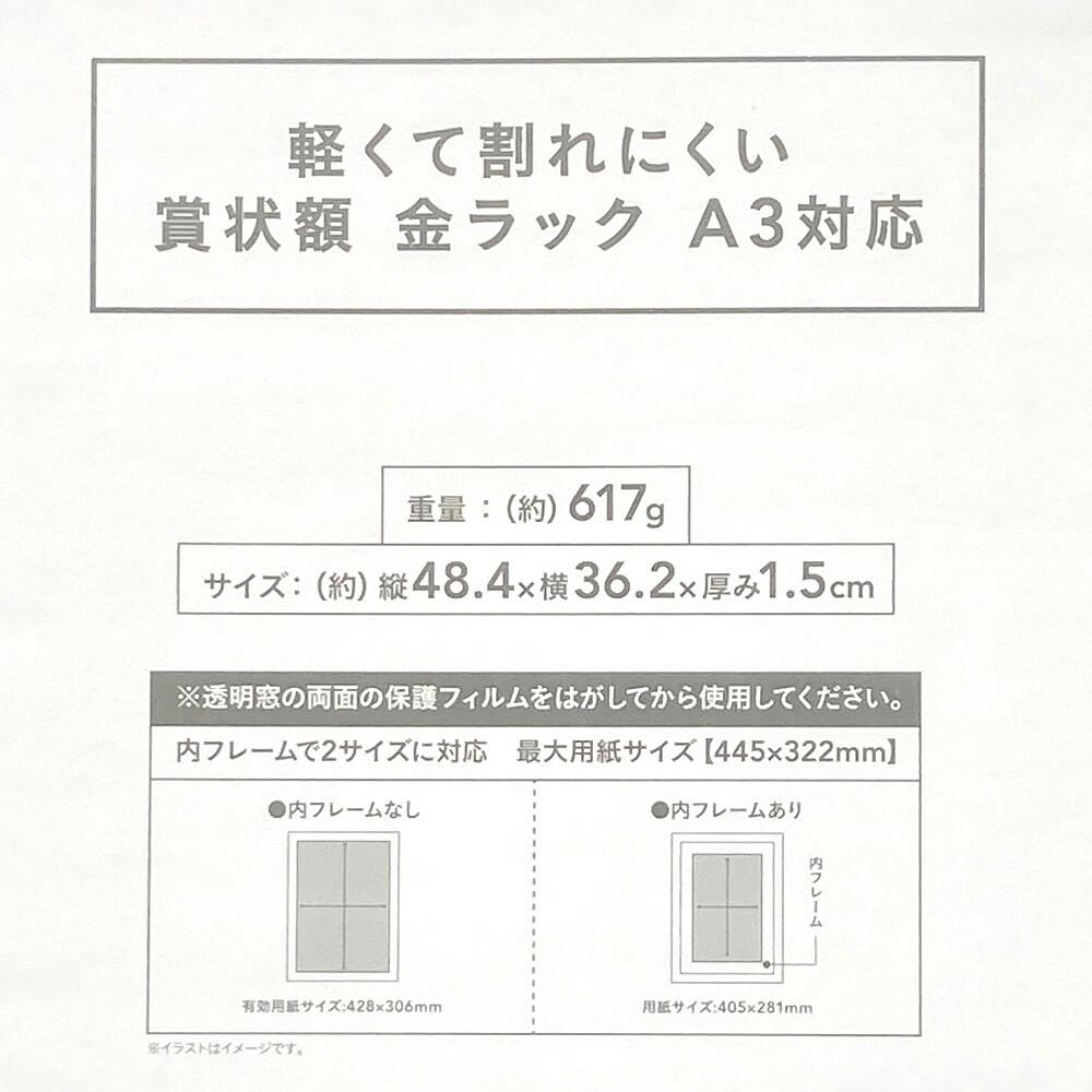 軽くて割れにくい賞状額 金ラック A3