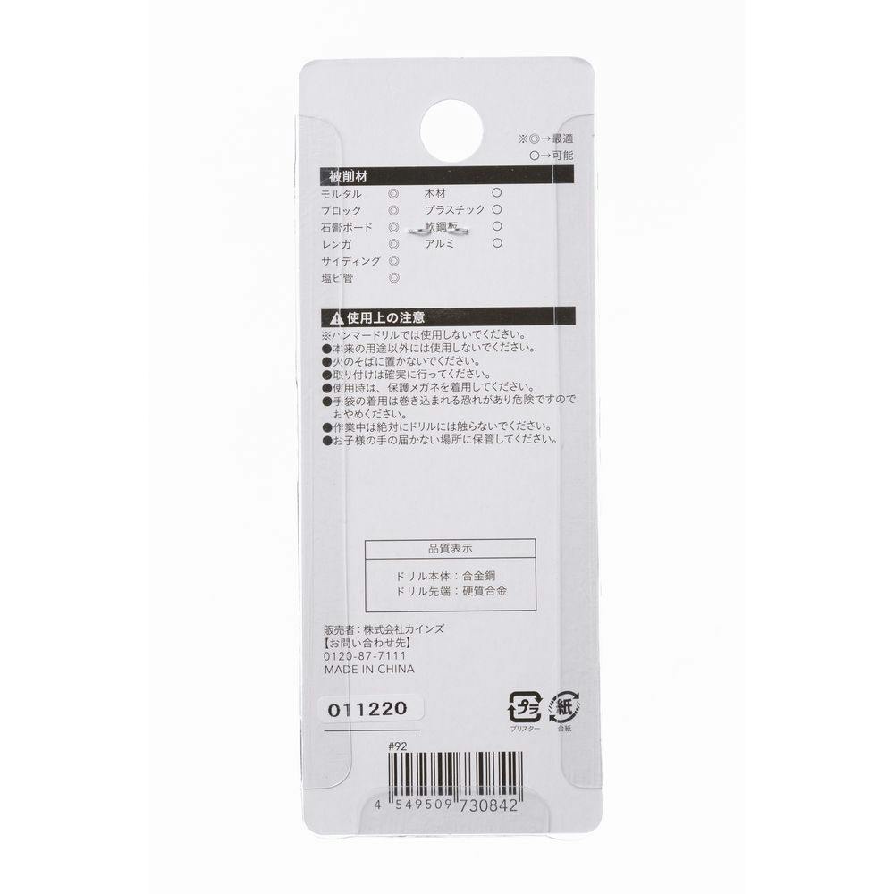 ●ドリル本体/合金鋼 ●ドリル先端/硬質合金