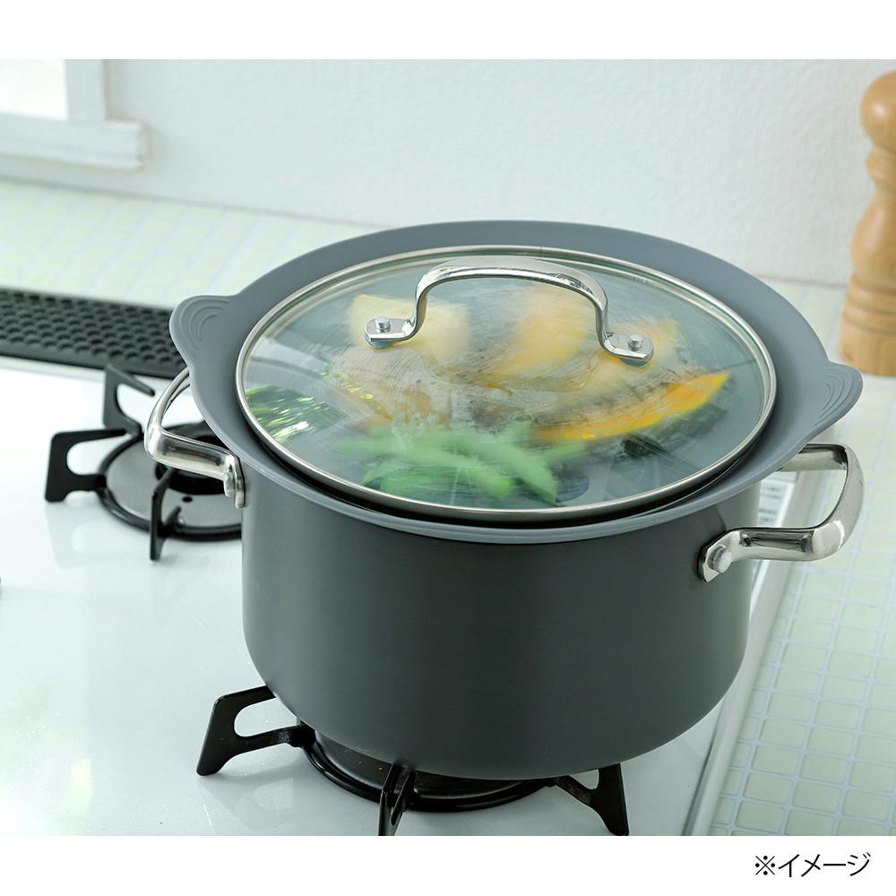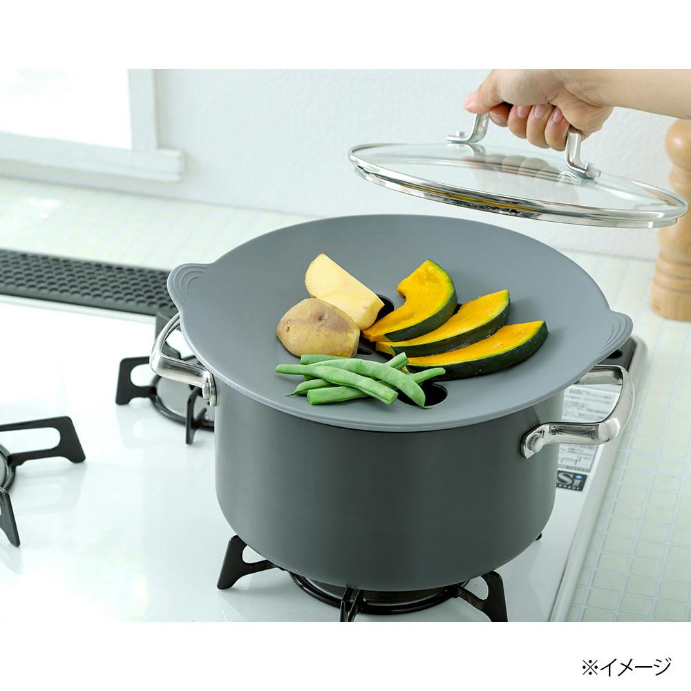 ●パスタやうどんのふきこぼれに:鍋やフライパンのフタとしてふきこぼれを防ぐ●ラップの代わりに本製品を乗せて電子レンジで加熱できる●カレーやシチューを煮ながら温野菜もできる