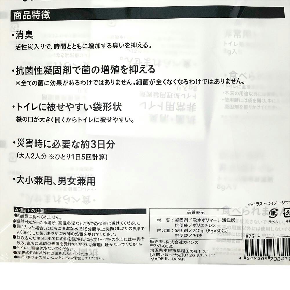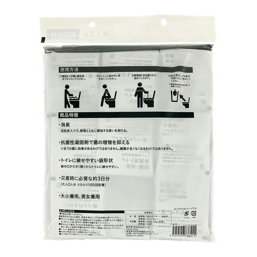 抗菌・消臭 非常用トイレ 30回分 袋×30枚、吸水ポリマー×30包入り