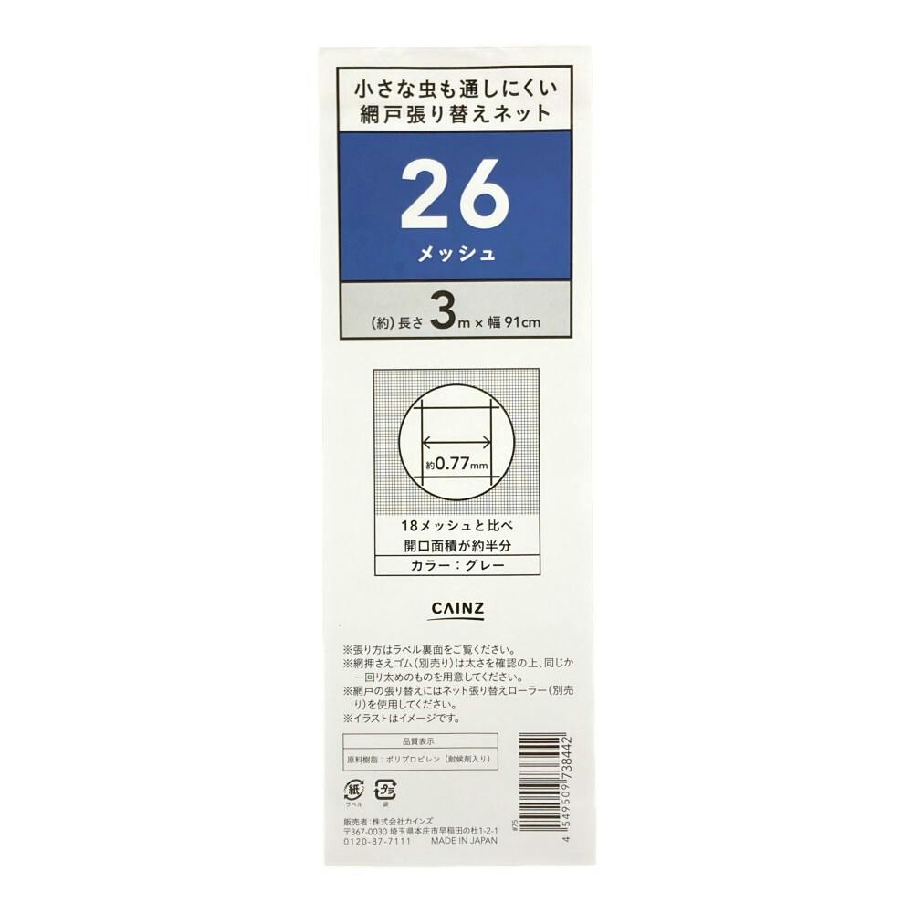 カインズ オリジナル 小さな虫も通しにくい 網戸張り替えネット 26メッシュ グレー 幅91cm 長さ3m 網戸張替え網
