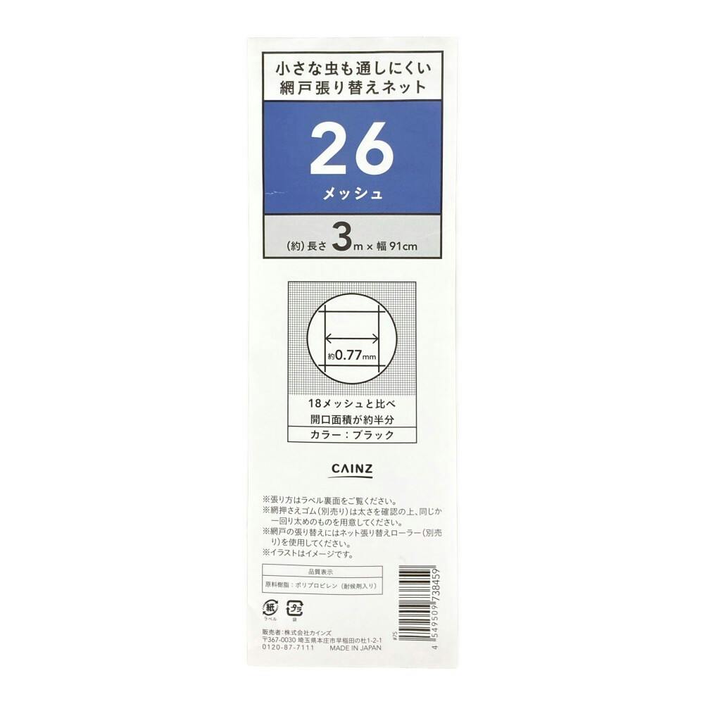 カインズ オリジナル 小さな虫も通しにくい 網戸張り替えネット 26メッシュ ブラック 幅91cm 長さ3m 網戸張替え網