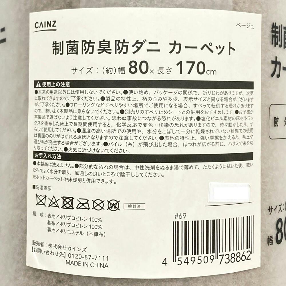 制菌防臭防ダニ カーペット ベージュ 1畳
