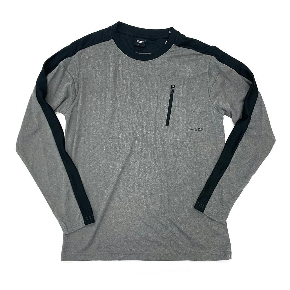 吸汗速乾アクティブムーブ長袖T ポケット 杢グレー M
