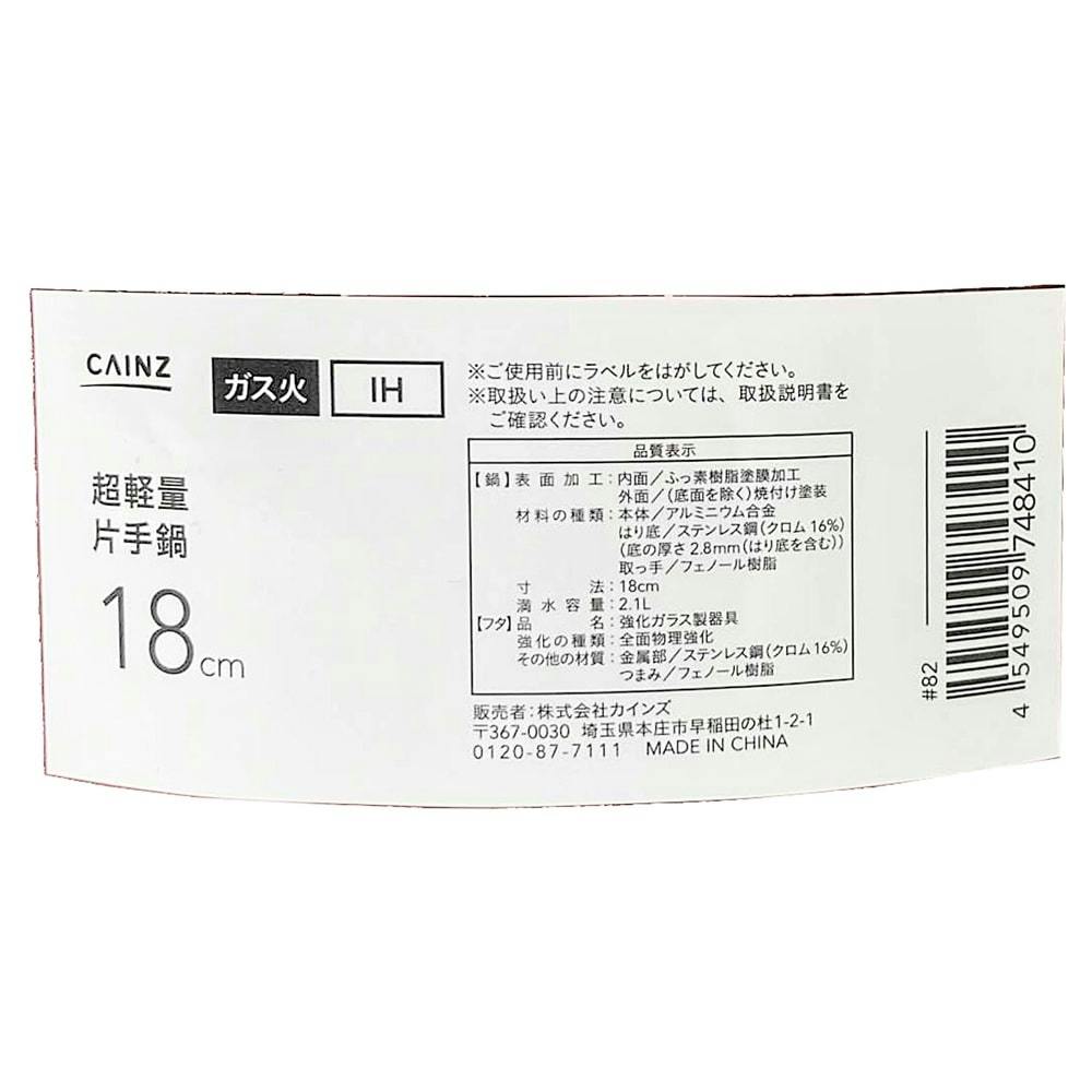 ●本体/アルミニウム合金 ●はり底/ステンレス鋼(クロム:16%、底の厚さ:2.5mm、はり底を含む) ●取っ手/フェノール樹脂 ●フタ 強化ガラス ●金属部/ステンレス鋼(クロム:16%) ●つまみ/フェノール樹脂